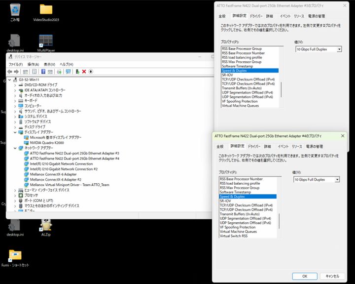 (3)G3-52 Windows11 FFRM-N4S2(10Gbps)とDell62 FFRM-N422(25Gbps)で接続