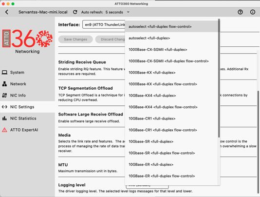 ATTO360NetworkingにてTuningProfilesは「High Throughput」に固定した。
