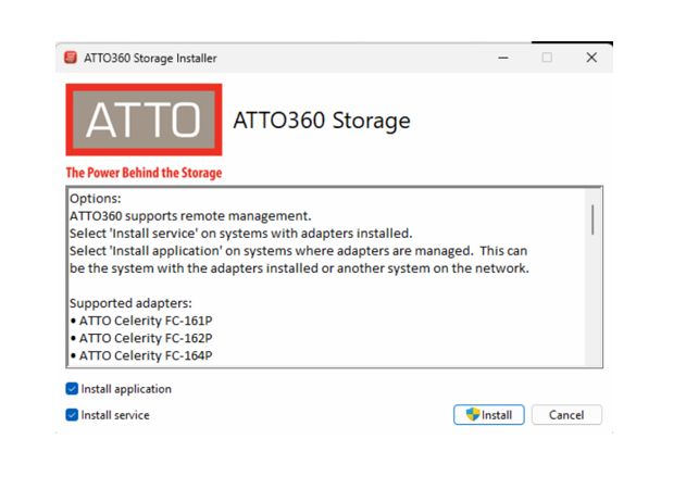 インストールは簡単です。ATTOサイトからダウンロードしたATTO360Storageのパッケージファイルを実行するだけ!※ATTO360NetworkingのNetworking SuiteパッケージではNICのドライバが同梱されており、同時にインストールされますが、ATTO360Storageには、HBAやThunderLinkのドライバは同梱されてませんので事前にHBA/ThunderLinkのドライバは別途インストールが必要です。