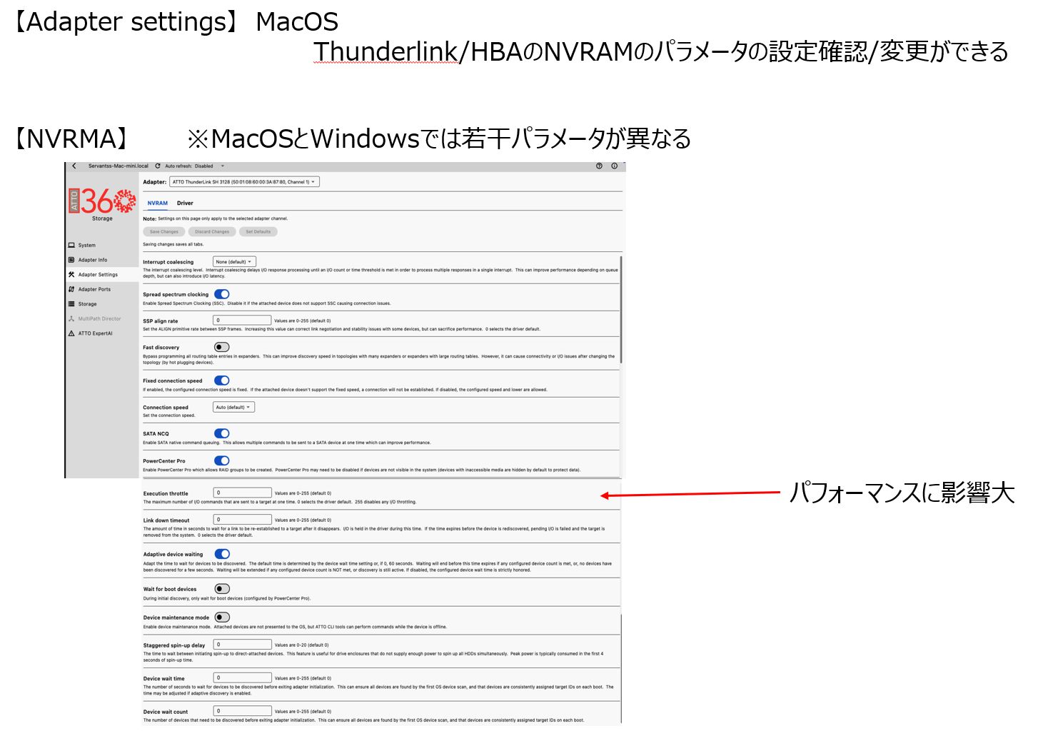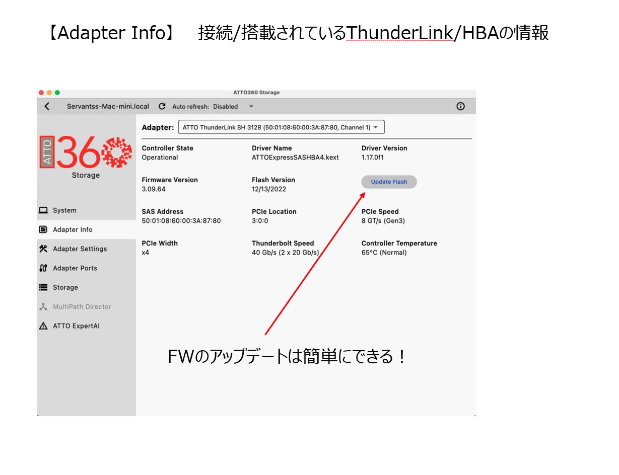 好評のNetworkを可視化して管理、チューニングできるATTO360NetworkingのStorage接続用のツールであるATTO360Storageのご紹介をさせていただきます。ATTO360Storageは、NVMe、SAS,FibreChannelでのストレージとHBA/ThunderLink接続の管理、設定、チューニングができます!これまで、細かい設定が厄介だったドライバの設定等も簡単に確認、変更が行えます。