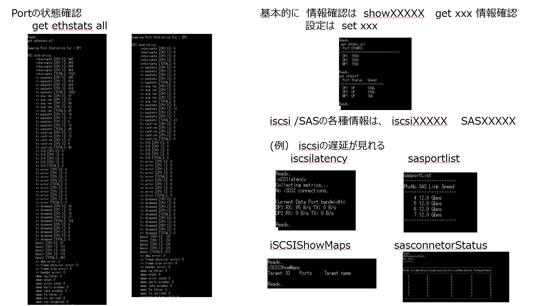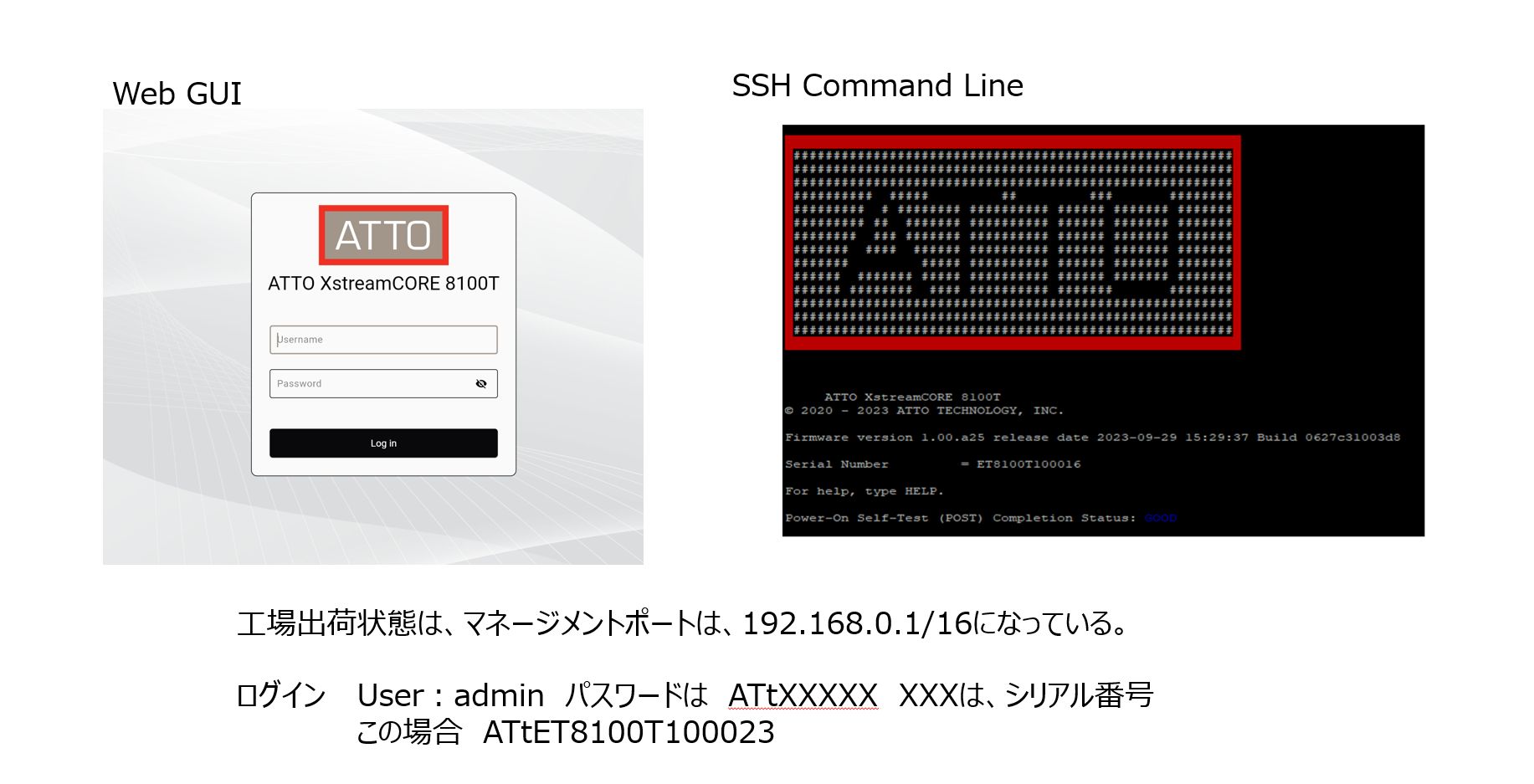SSHで接続するとコマンドラインでWebGUIではできない設定が各種用意されております。一部を詳細しますが、詳細はATTOのマニュアルダウンロードサイトからXstreamCORE 8100T Installation and Operation Manualをご参照ください。