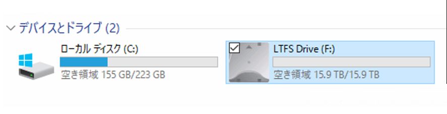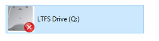 レジストリの設定をしないと、LTFSのドライブは認識されるが、カセットをロードすると”X”になる