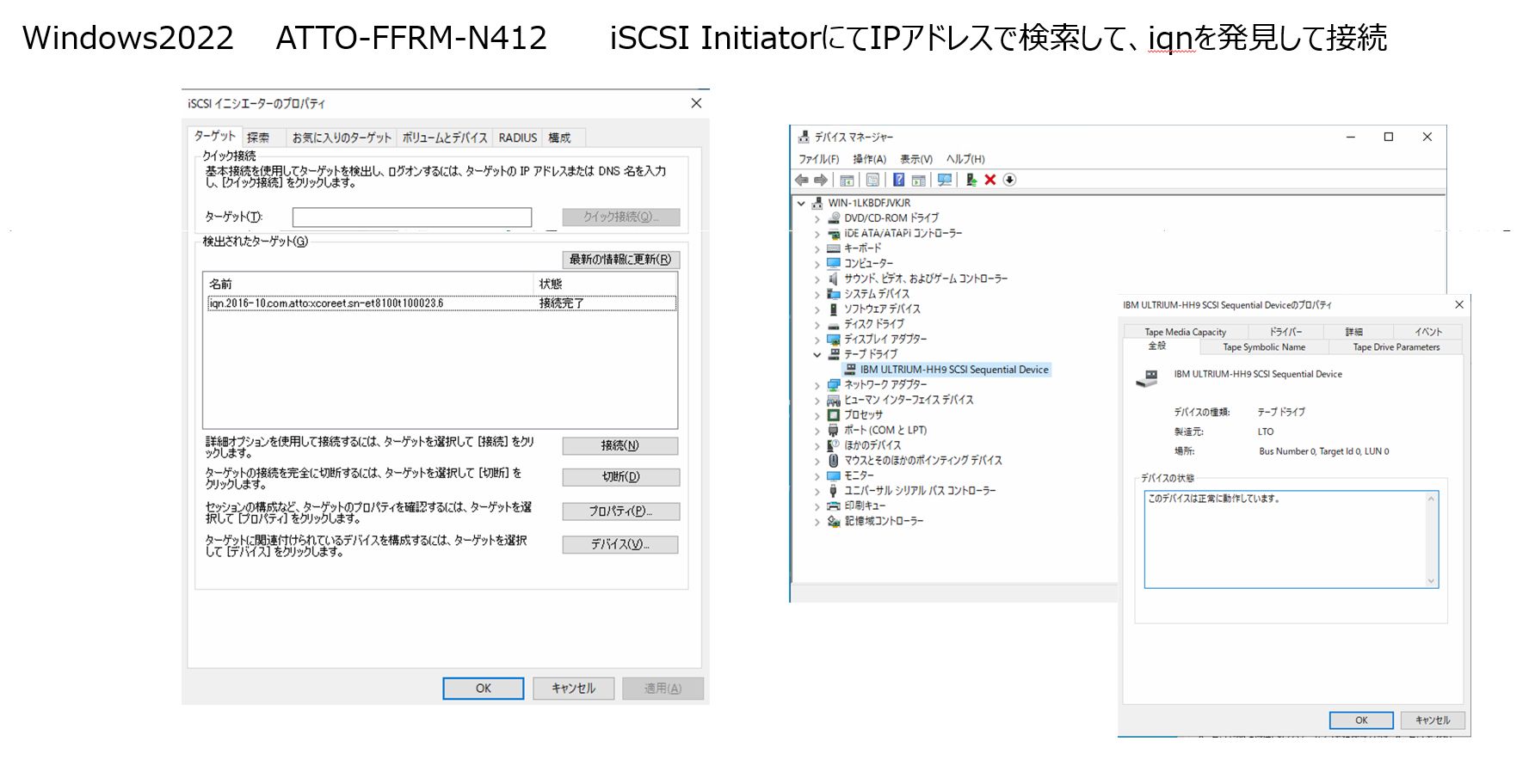 ATTOのXtendSANユーティリティ(iSCSIイニシエータ)にて、テープデバイスを認識する