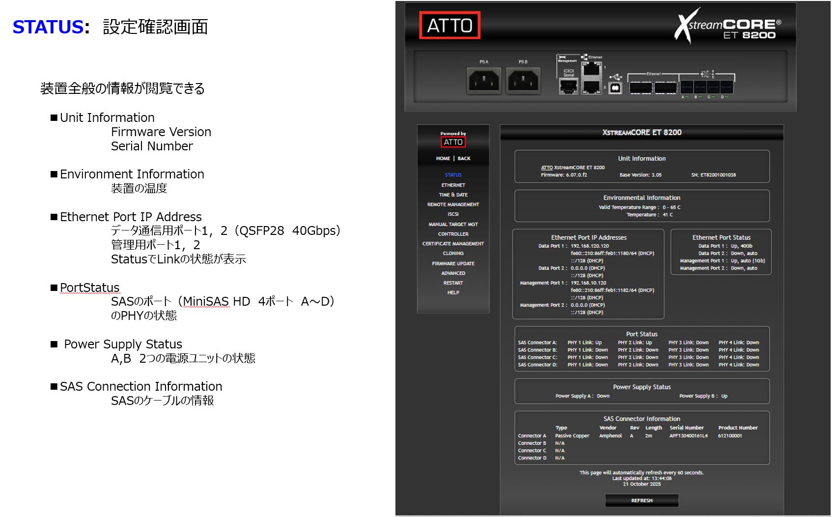 「STATUS」ウィンドウでは、ET-8200の情報、状態が確認できます。