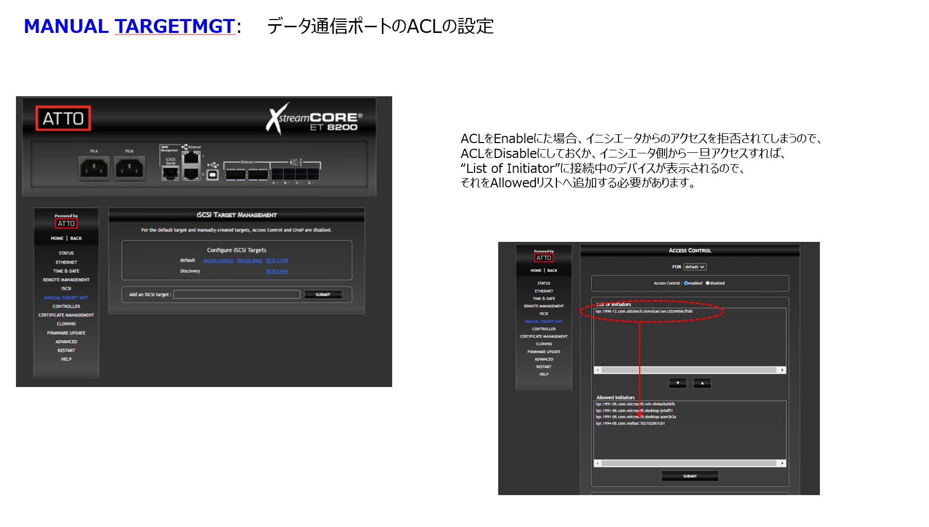 7. MANUAL TARGETMGT: データ通信ポート ACL(アクセスコントロールリスト)の設定