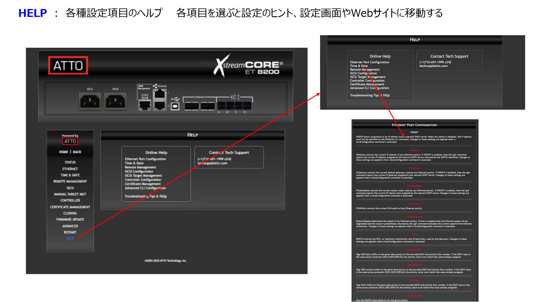 HELPウィンドウから各設定項目を選択するとヒント、アドバイス、マニュアル(ATTOサイト)を案内します。